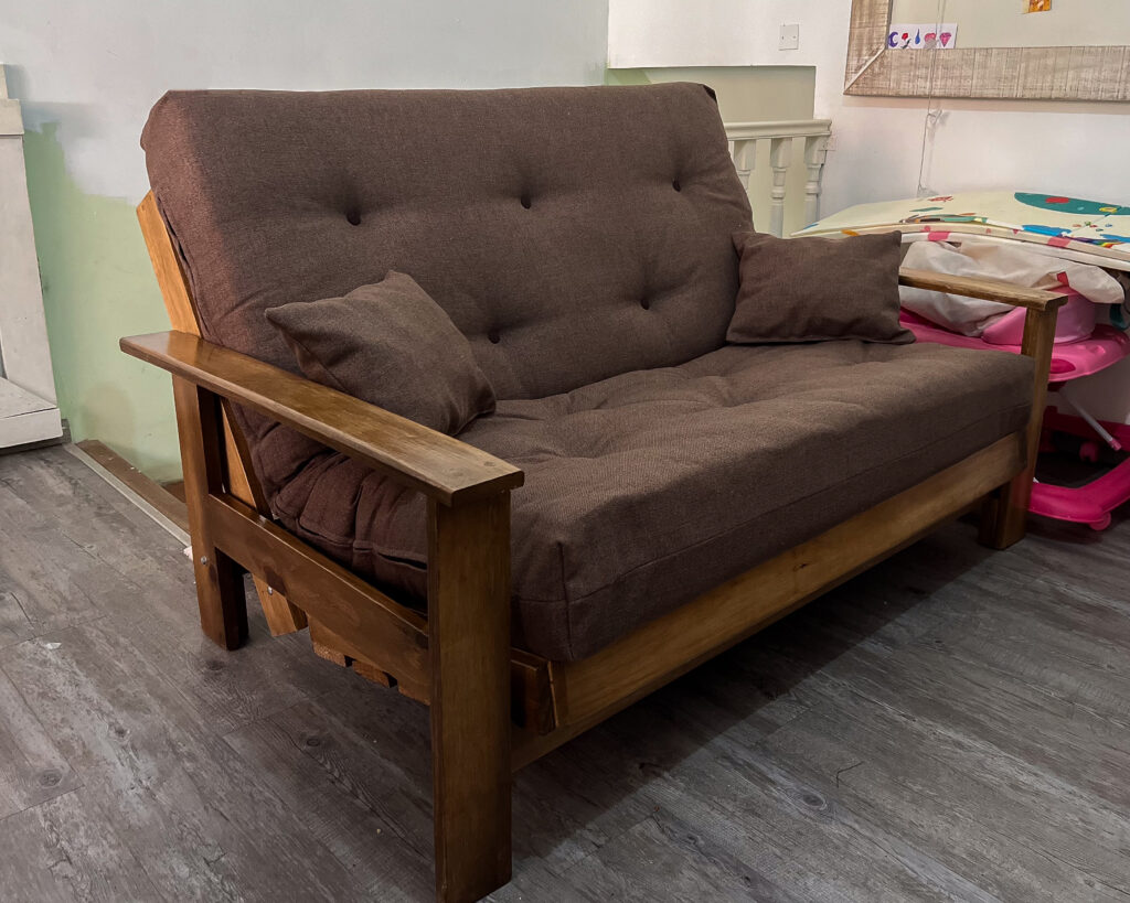 Este futón no solo es un sofá cómodo, sino que se transforma fácilmente en una cama de 1.90m de profundidad, perfecta para acomodar visitas.